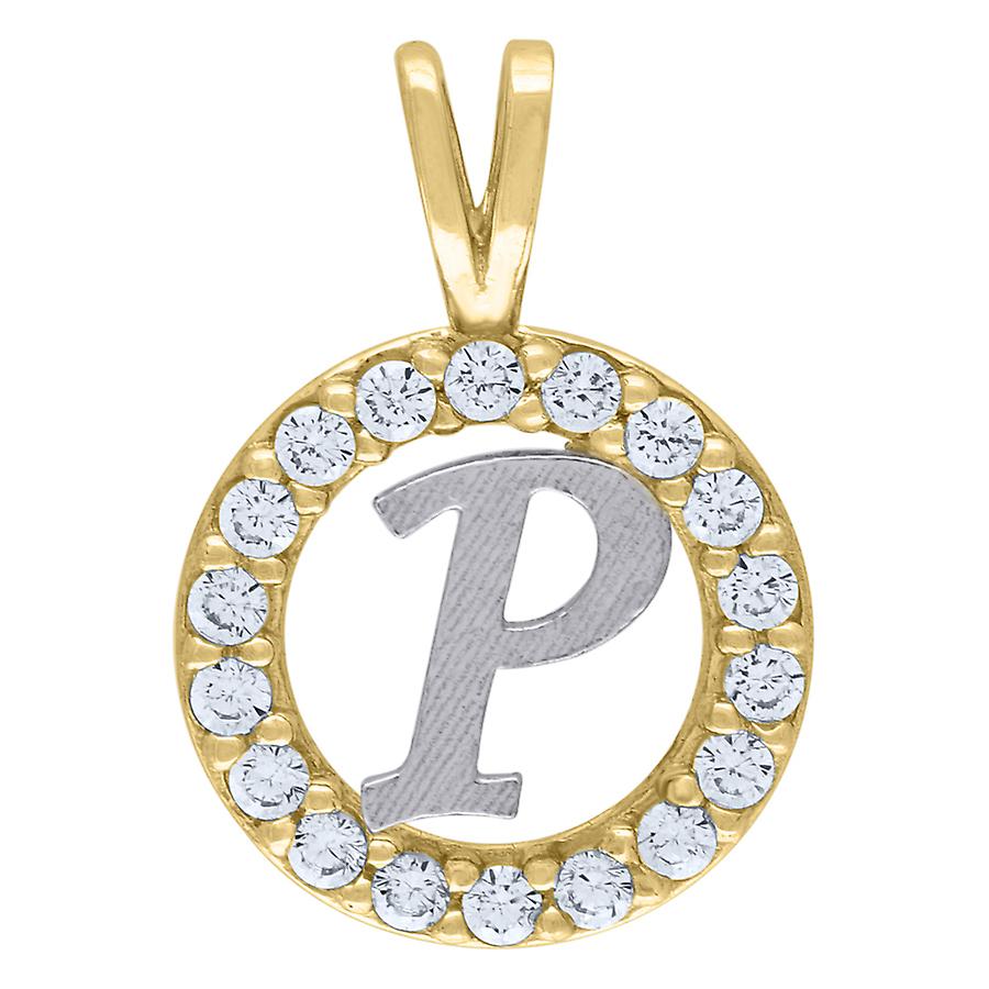 10k Two tone Gold Unisex Cubic Zirconia Letter Name Personalized Monogram Initial P Round Charm Pendant Necklace 17.6x12