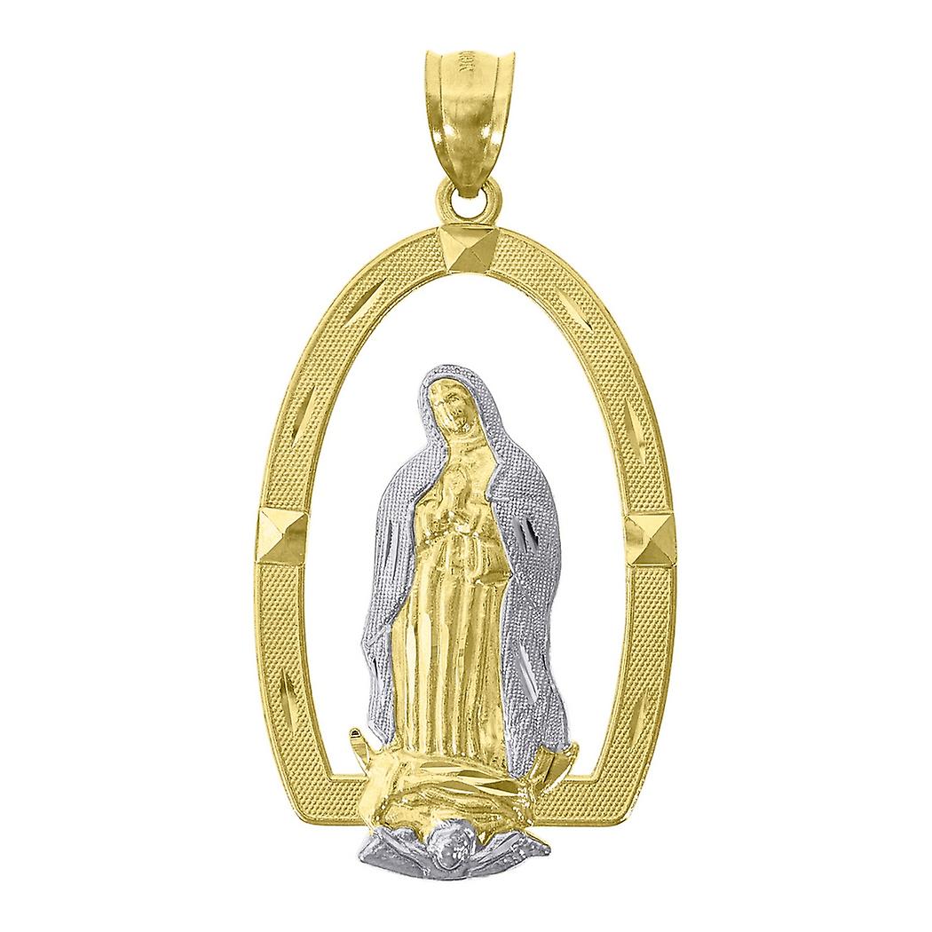 10k Two tone Gold Unisex Religious Guadalupe Charm Pendant Necklace 50x23.6mm Wide-Pendant for Women