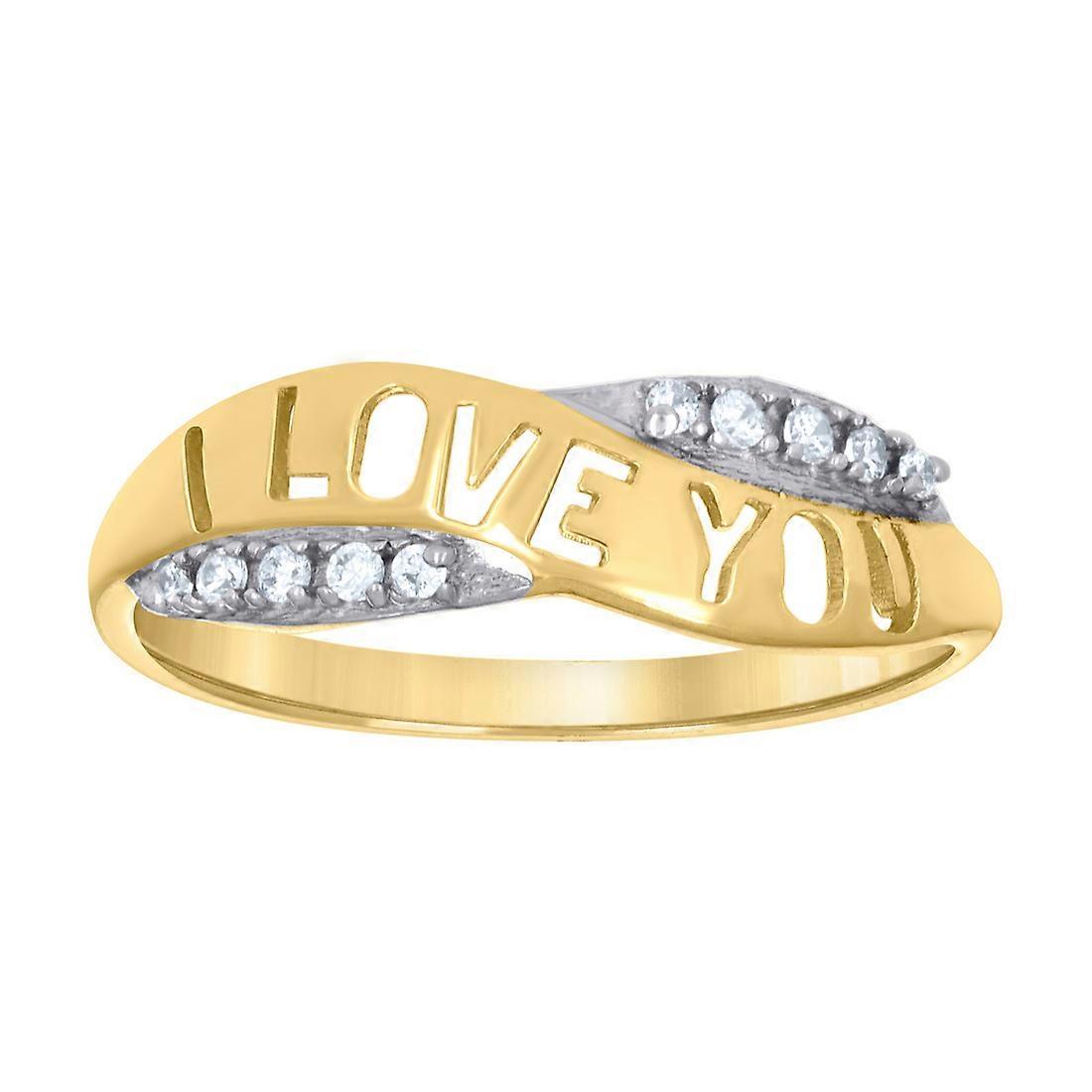 10k Two-tone Gold Womens Cubic Zirconia I Love You Ring - Measures 5.5x1.7mm Wide - 1.2 Grams In 10k Yellow Gold and White Gold - - [ Potential Enhancement Methods: cubic zirconia ] - Synthetic. Some are covered with a product that makes the stone more durable. - [ Care and Handling: cubic zirconia ] - Clean with warm soapy water and a soft cloth. -