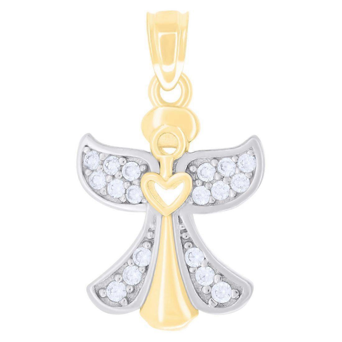 10k Two tone Gold Womens Cubic Zirconia Religious Guardian Angel Charm Pendant Necklace 21x12.5mm Wide-Pendant for Women