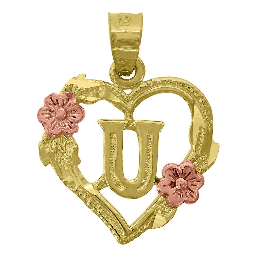 10k Two tone Gold Womens Love Heart Flower Initial Letter U Charm Pendant Necklace 20x15.20mm Wide-Pendant for Women