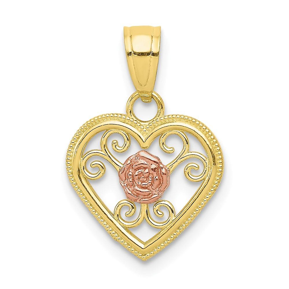10k Two Tone Polished Gold Small Love Heart Charm 15x10mm Wide Pendant Necklace for Women - .6 Grams