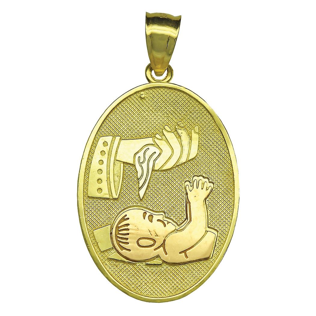 10k Tri color Gold Textured Unisex Baptism Bautizo Height 30.1mm X Width 16.2mm Religious Charm Pend Pendant Necklace fo