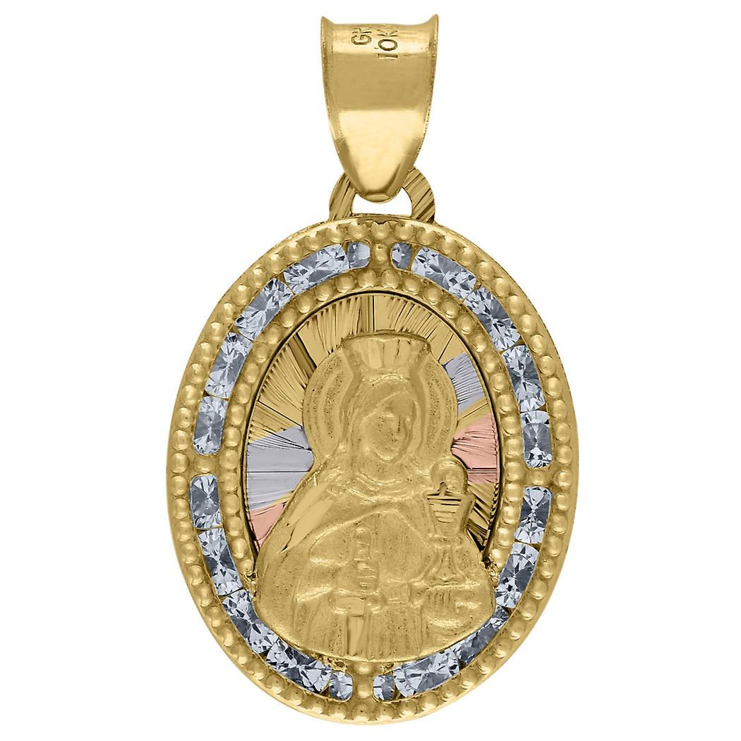 10k Tri color Gold Unisex Cubic Zirconia Saint Barbara Religious Oval Charm Pendant Necklace 24.2x14.4mm Wide-Pendant fo