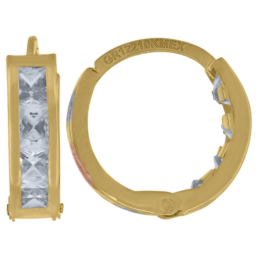 10k Tri color Gold Womens Princess cut Cubic Zirconia Huggie Hoop Earrings 13.3x10.2mm Wide-Hoop Earring for Women