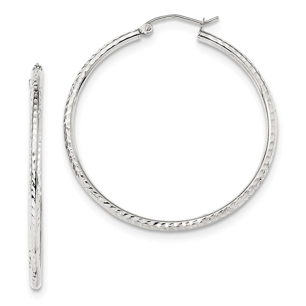10k White Gold Sparkle Cut 2mm Round Tube Hoop Earrings 41.02x39.37mm Wide 2mm Thick-Hoop Earring for Women