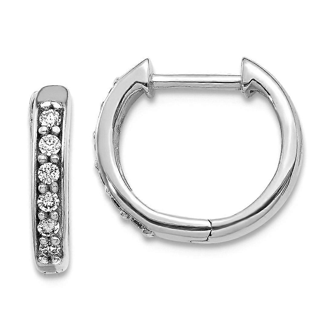 10k White Gold Diamond Hinged Hoop Earrings 11x12mm Wide 2mm Thick-Hoop Earring for Women