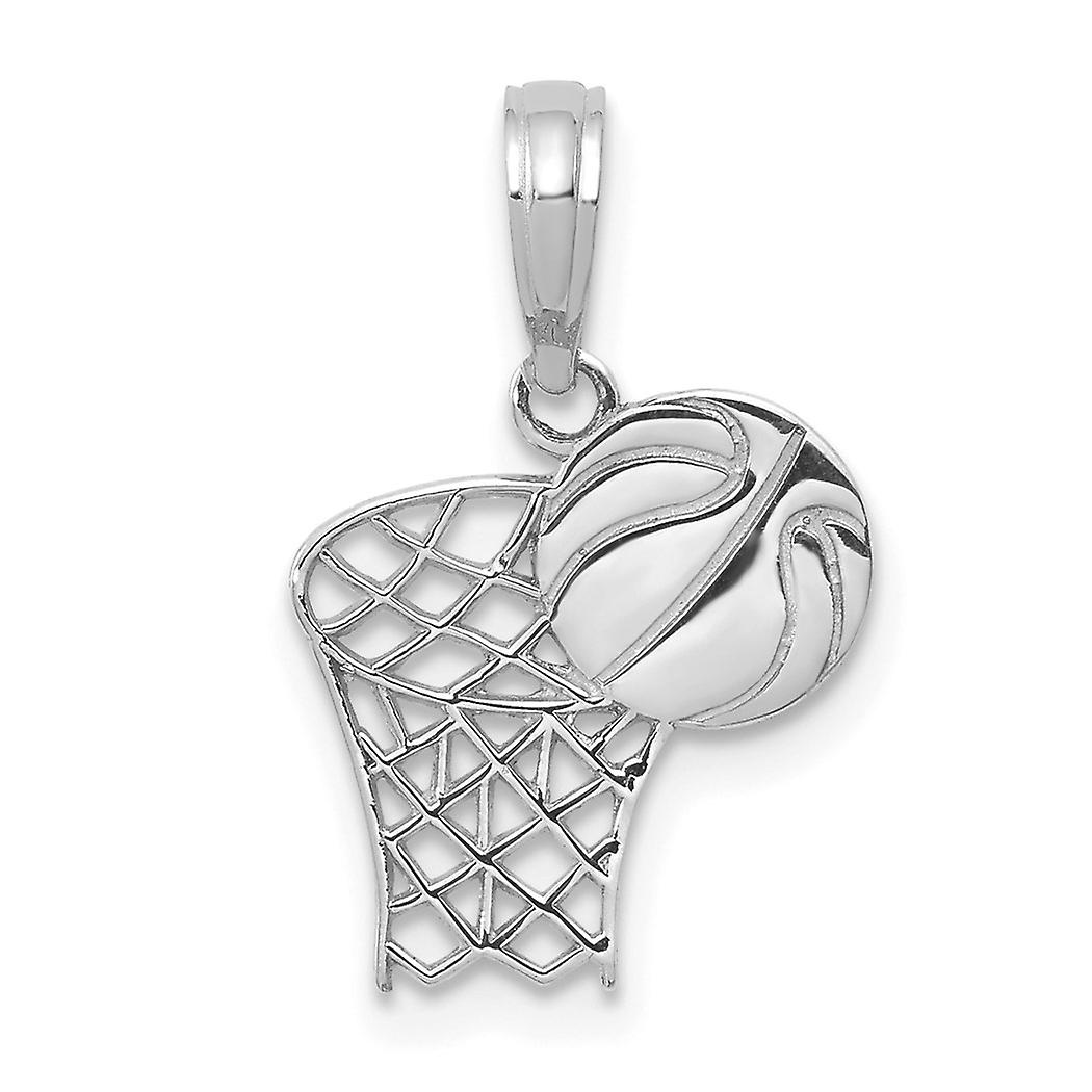 10k White Gold Basketball Hoop and Ball Pendant Necklace-Pendant for Women - .4 Grams