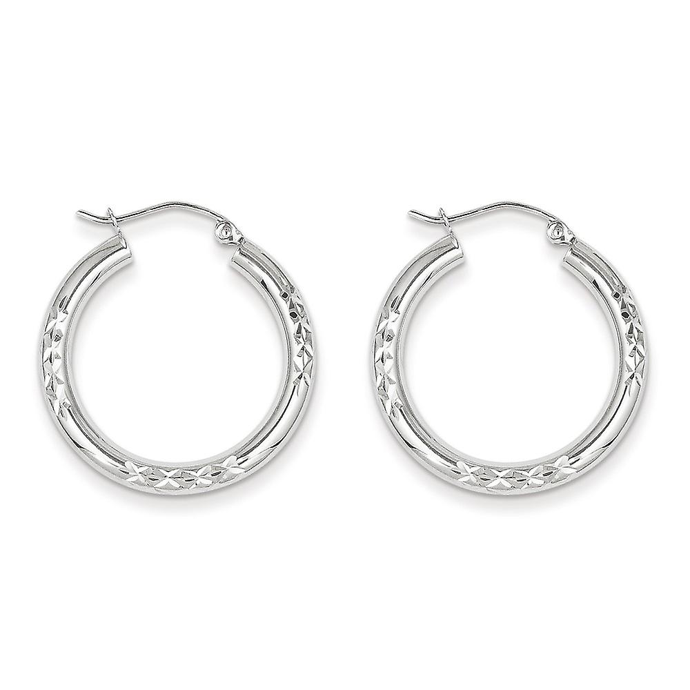 10k White Gold Polished Hinged post Sparkle Cut 3mm Hoop Earrings 26x25mm Wide 3mm Thick-Hoop Earring for Women