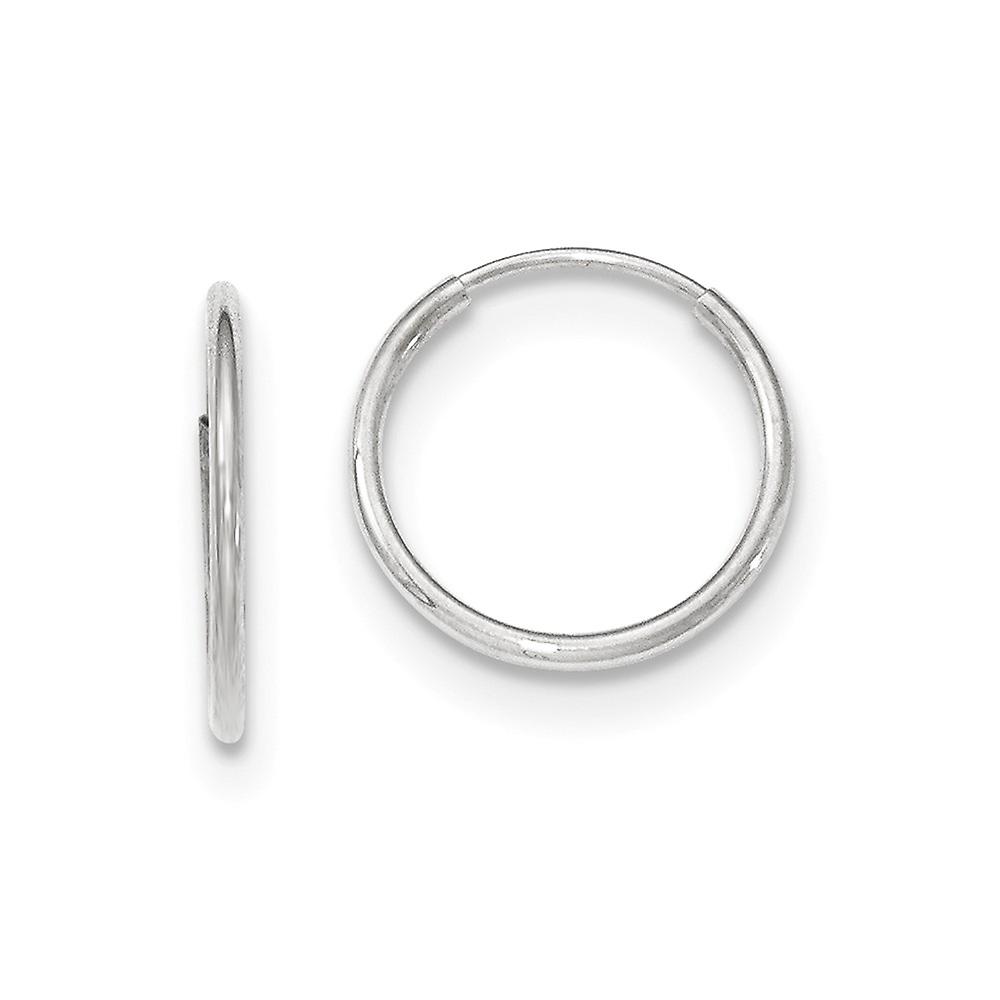 10k White Gold Endless Hoop Earrings - Measures 17x17mm Wide 1.2mm Thick - in 10k White Gold - Product Attributes: - Hollow - Polished - - Thickness: 1.25 mm - Width of Item: 1.25 mm - Length of Item: 16 mm - Earring Closure: Hidden Wire & Catch - Earring Type: Hoop - Finish: Polished - Feature: Hollow - Engravable: Not Recommended -