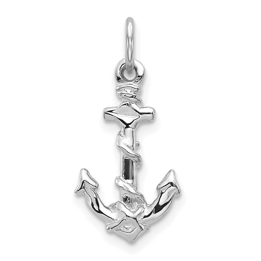 10k White Gold Nautical Ship Mariner Anchor Pendant Necklace-Pendant for Women - .6 Grams