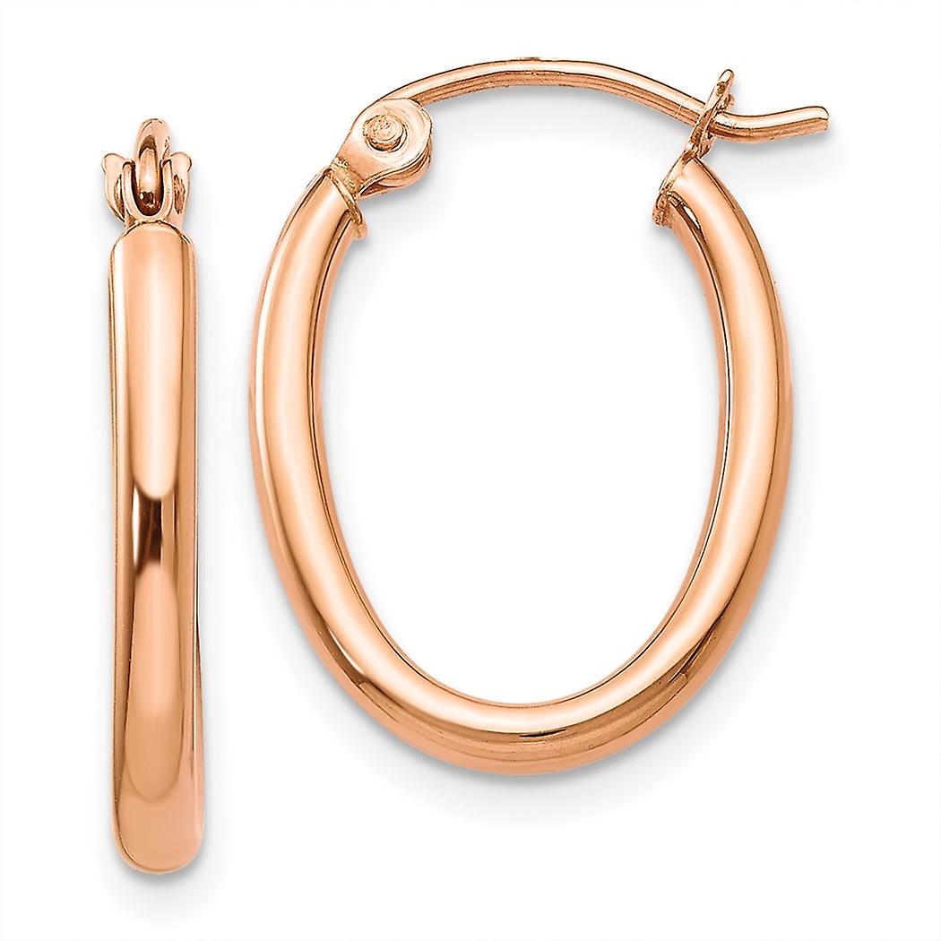 10k Rose Gold Oval Hoop Earrings 21x13.5mm Wide 2mm Thick-Hoop Earring for Women - .9 Grams