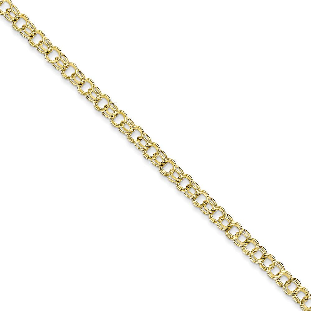 10k Yellow Gold Polished Solid Double Link Charm Bracelet Lobster Claw 5.25mm Wide-Link-Charm-Bracelet for Women - Lengt