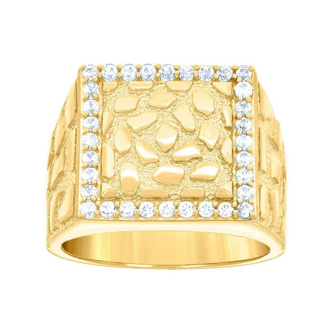 10k Yellow Gold Mens Cubic Zirconia Nugget Square Head Fashion Ring 16x7.7mm Wide-Ring for Men