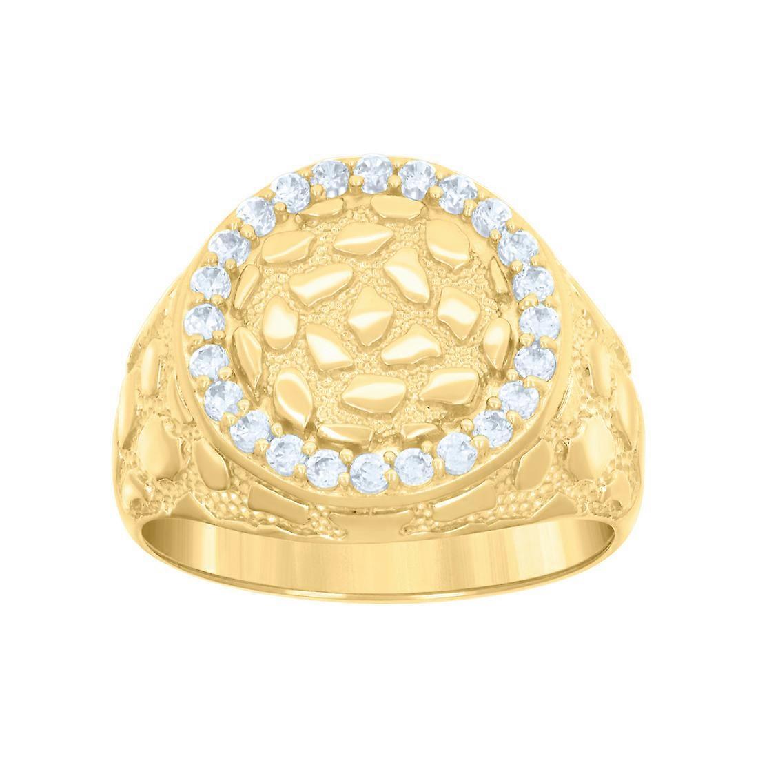 10k Yellow Gold Mens Cubic Zirconia Nugget Round Head Fashion Ring 16.7x7mm Wide-Ring for Men