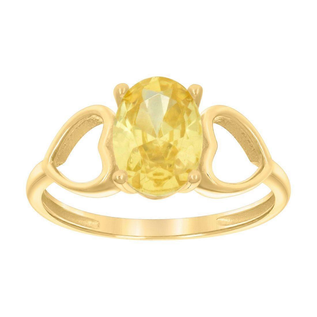 10k Yellow Gold Yellow Oval Cubic Zirconia Love Heart Ring 6.9x6.9mm Wide Statement-Ring for Women