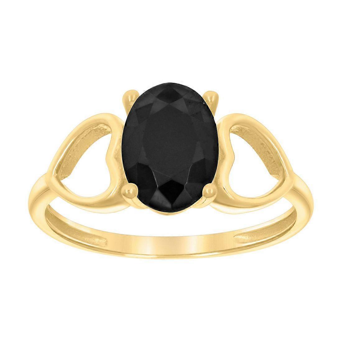 10k Yellow Gold Black Oval Cubic Zirconia Love Heart Ring 6.9x6.9mm Wide Statement-Ring for Women