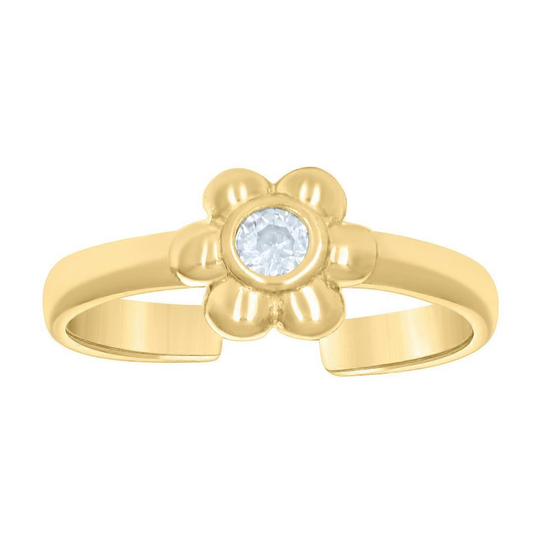 10k Yellow Gold Womens Cubic Zirconia Flower toe ring 5.8x1.8mm Wide-toe ring for Women - .9 Grams