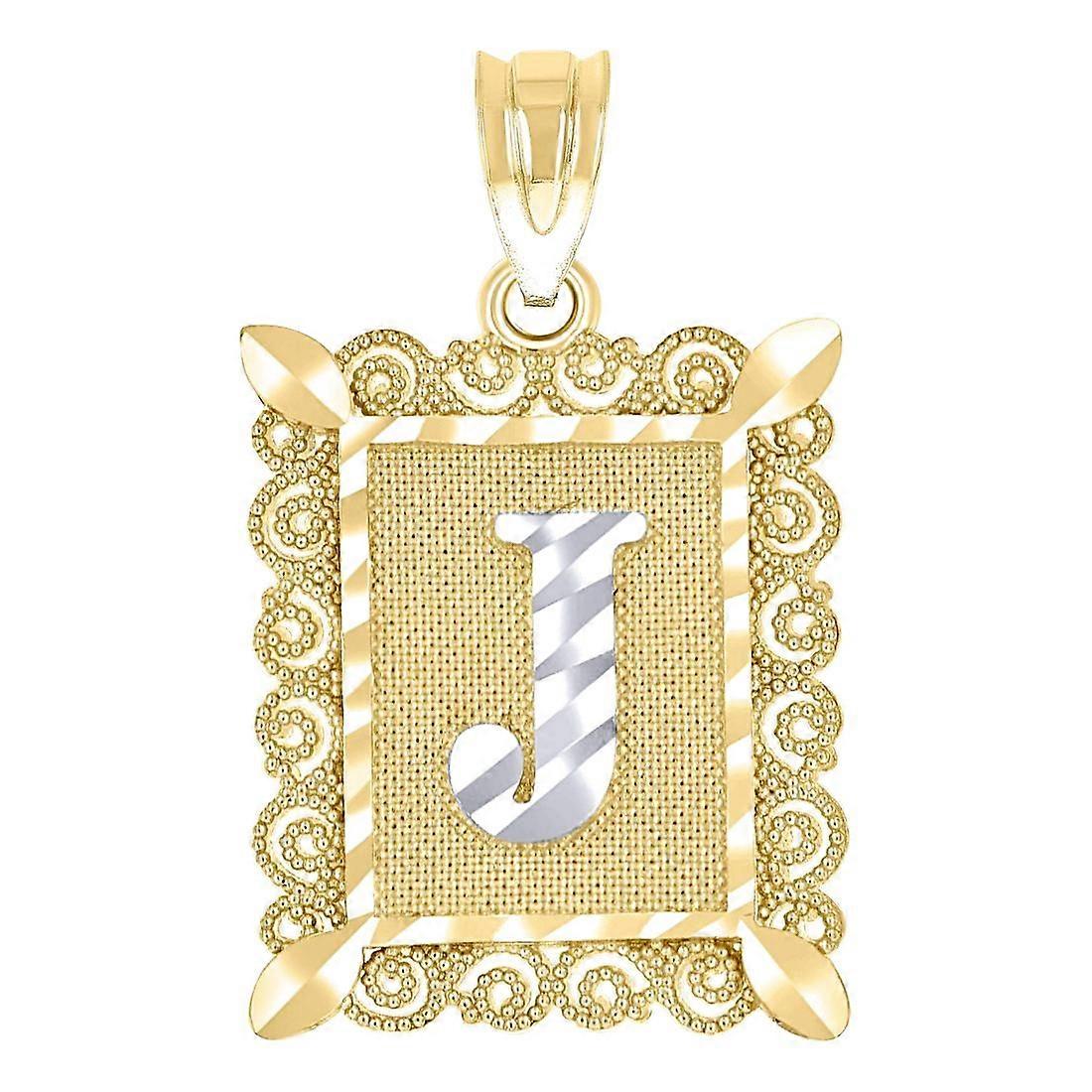 10k Two tone Gold Unisex Sparkle Cut Letter Name Personalized Monogram Initial J Charm Pendant Necklace 20.9x12.20mm Wid