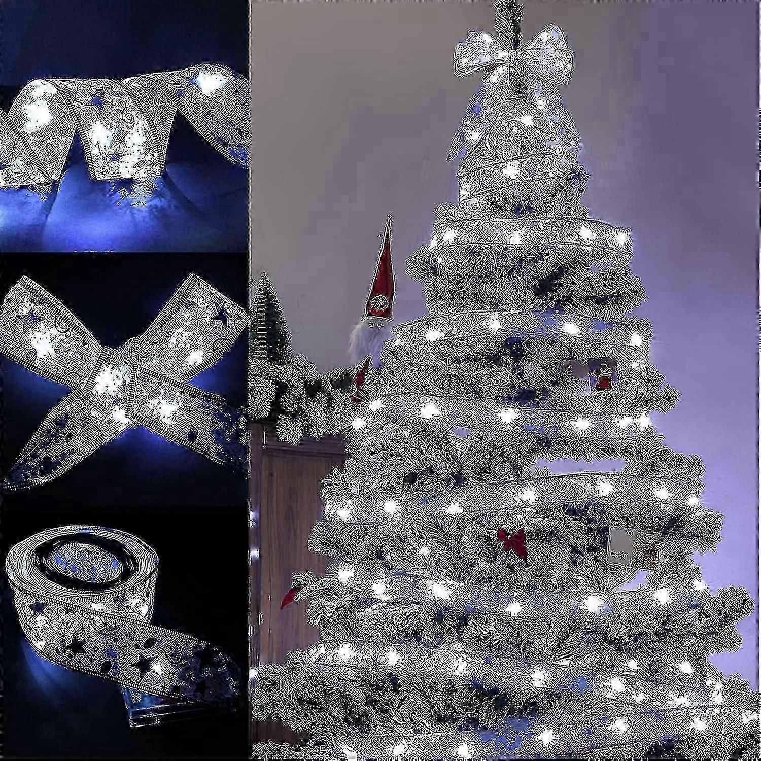 10m Christmas Tree Ribbon Lightswhite,shiny Ribbon String Lights,led Christmas Tree Ribbon,christmas Ribbon Lights,lace Bow Diy Holiday Tree Decor Ind