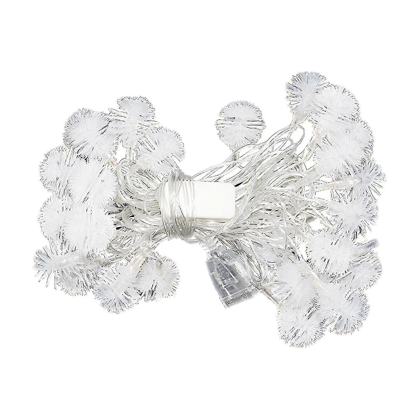 10M 80 lights Christmas decoration snow pompom winter decoration LED hair ball lantern battery string lightsfeature: 100% brand new and high quality The switch has two modes: flashing and constant light. The light wire is flexible and bendable, and can be bent or adjusted in any shape to meet your decoration needs. How to open the battery compartment cover: Look for the ""open"" sign and pay attention to the two buckles. Gently press ""Open"" with your thumb and slide in the direction of the . The material is made of ABS, and each string of lights has been baked at high temperature to make the flowers high in hardness. The light string is durable, safe and reliable, the power source is energy-saving and low-consumption, battery-powered, and it is decorated everywhere instead of plugs. Very suitable for Christmas tree/desktop/door frame/doorway/window/railing/garden/wedding/winter holiday party indoor and outdoor decoration. They are also holiday gifts for friends or family.Specification: Number of LEDs: 80 Material: Epoxy + Plastic Total length: 32.7ft/10M Lighting mode: always on/flashing Power supply: 3 AA batteries (not included) Light color: color/white/warmnotes: Due to manual measurement, please allow 0.5-1cm error Due to the differences between different monitors, the picture may not reflect the actual color of the item.Package Contents:1 X LED string light