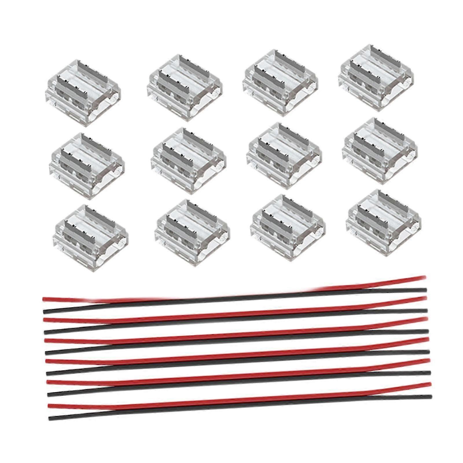 10mm LED Strip Connectors 12 Pack with 6 Wires 15cm Cable for 2 Pin Lighting