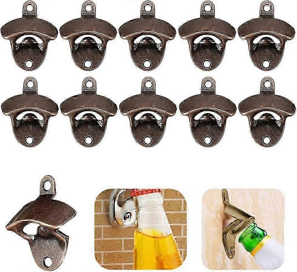 10pcs Vintage Bronze Wall Mounted Corkscrews with Two Screws for Wine Beer Soda