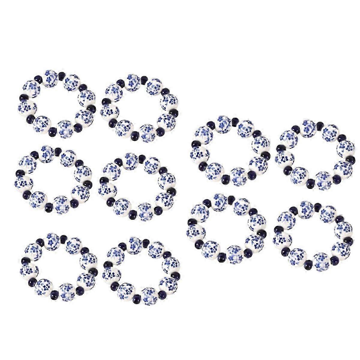 10PCS Ethnic Style Hand-Painted Blue White Beads Napkin Ring Home Table Decoration Napkin Buckle Han