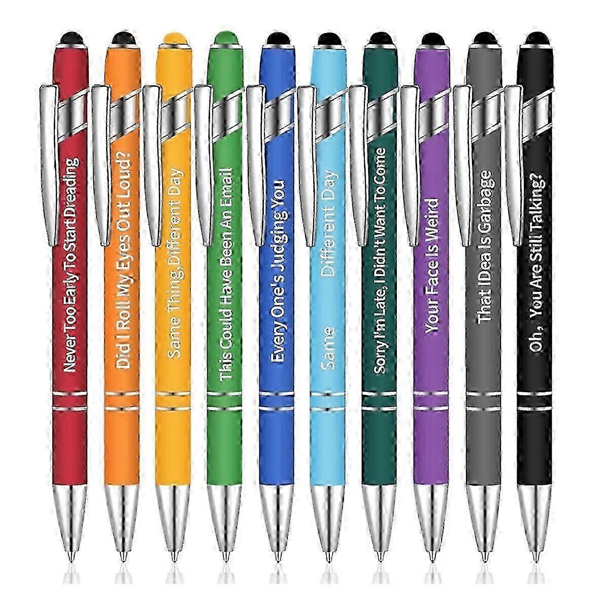 10PCS Office Pens Humorous Ballpoint Pens with Negative Quotes and Macaron Touch Stylus for Office