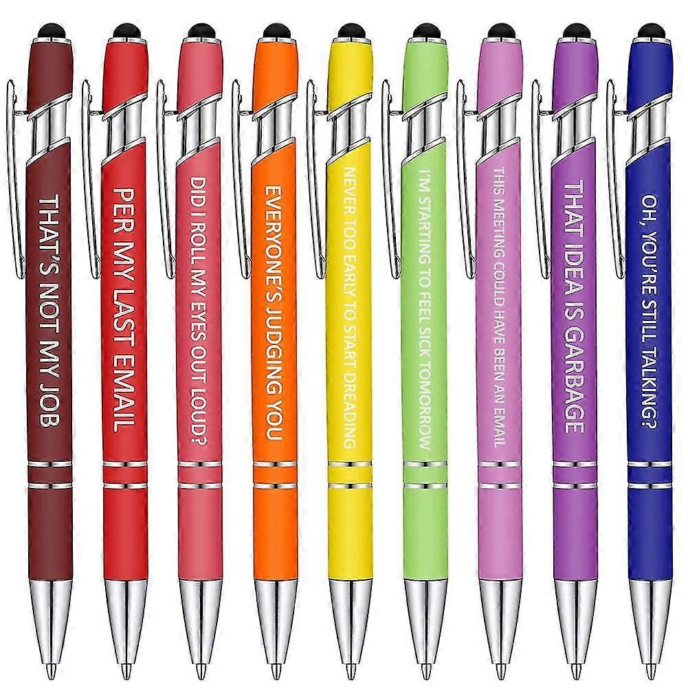 10pcs Office Pens Funny Pens Demotivational Sarcastic Ballpoint Pens Macaron Touch Stylus Pens For Office, Black