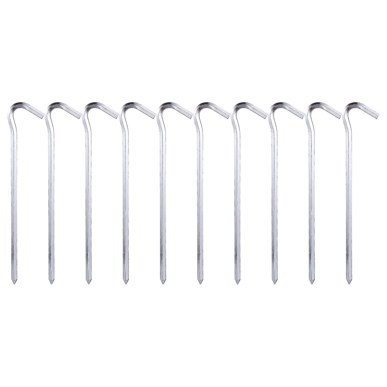 These tent pegs are made by light weight and durability material, corrosion resistance, very efficient. Elegant simple shape make theseground pegsdecoration your garden perfectly. It also can be use asgarden anchor ortent stakes, perfectly for outdoor and camping use._x000D__x000D_Features_x000D__x000D_-Color: Silver_x000D_-Material: Glass fiber rod_x000D_-Size: 18.00X1.00X1.00cm/7.07X0.39X0.39in_x000D_- The ground tent stakes are heavy duty. They are sturdy and go deep enough to hold in soggy ground and hard soil._x000D_- The tent stakes with curved hook is convenient to attach rope or anchor and easy to pull out. Ground stakes is easy to hold your decoration and stay firmly in the place._x000D_- Durable and practical stakes are rust proof and resistance in outdoor weather._x000D_- Perfect for anchoring tents, canopies, tarps, garden netting, gazebos, football nets, groundsheets, awnings and windbreaks._x000D_- Can be used to beautify the environment and protect fences. Build shelters to protect plants and vegetables from deer and other nasty animals. Great for ensuring outdoor holiday decorations.Packing list: 10 x tent pegs