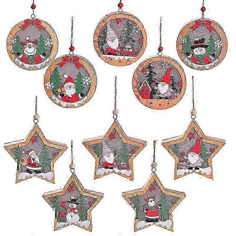 [Christmas Decoration] Contains 10 pieces Christmas decoration. Large quantity and beautiful patterns can meet your different DIY requirements. [QUALITY MATERIALS] Christmas decoration made of high quality wood, not easy to break, no odor, sturdy and durable. Beautiful and natural pattern, uniform color, smooth edges, will not hurt your hands. [Designed with heart] Creative design makes you feel surrounded by Christmas atmosphere, different patterns are more vivid. Hanging Christmas decoration specially designed for Christmas parties, it creates a festive and warm atmosphere. [FUN DIY] You can add pearlescent paints and small decorations to stick on this hanging Christmas decoration and decorate the Christmas tree or other parts of your home with your children, family or friends. Enjoy a happy DIY time with your loved ones. [MULTIPLE APPLICATIONS] Hanging Christmas decoration is suitable for table decorations, craft ornaments, gifts, also can be used for dollhouse garden decoration, wedding party decoration, Christmas tree hanging, Easter decorations and so on.