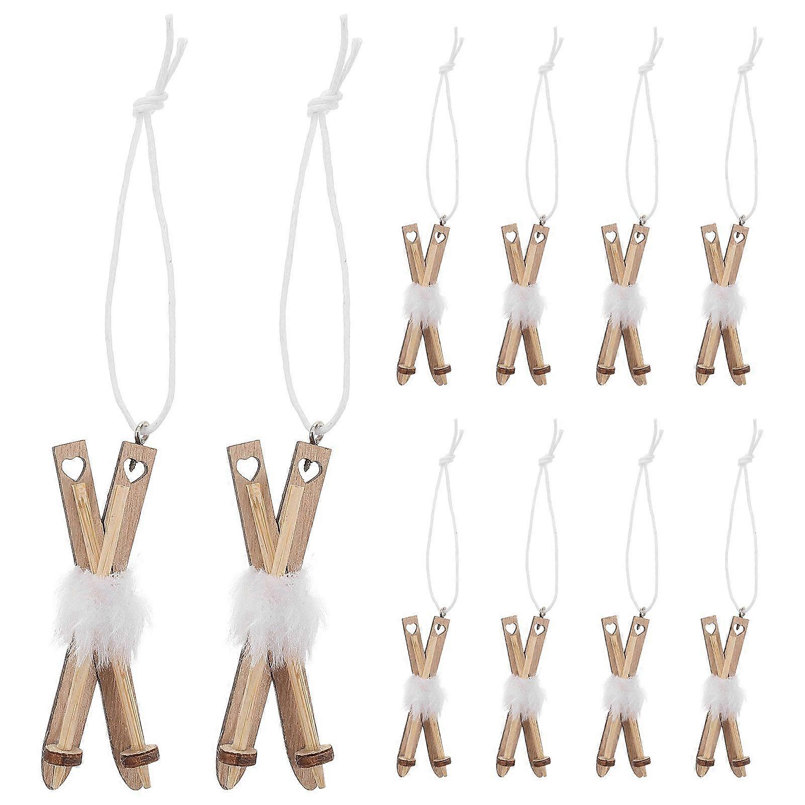 10pcs Christmas Sled Ornaments Ski Xmas Ornament Mini Sleigh Snow Ski Hanging Christmas Tree Ornament Mini Wooden Sleigh Ornaments Rustic Festive Pend