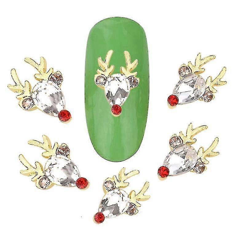 10pcs Golden Deer Head Manicure Ornament Charm Nail Rhinestone Glass Gemstone Diy Christmas Gift