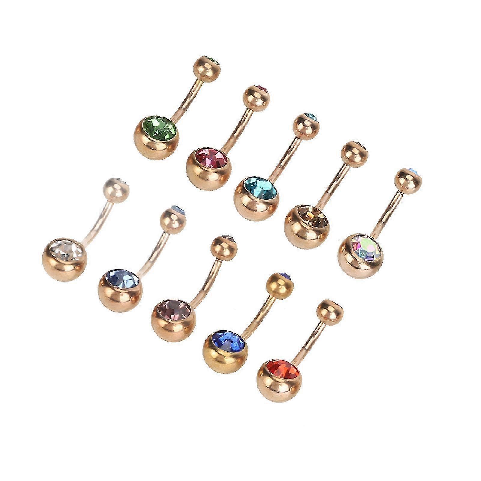 10pcs Stainless Steel Belly Ring Double Rhinestone Zircon Navel Piercing