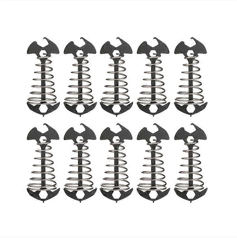10pcs Deck Plank Board Tent Stakes,fishbone Deck Anchor Pegs With Spring Buckle For Outdoor Camping Hiking,black