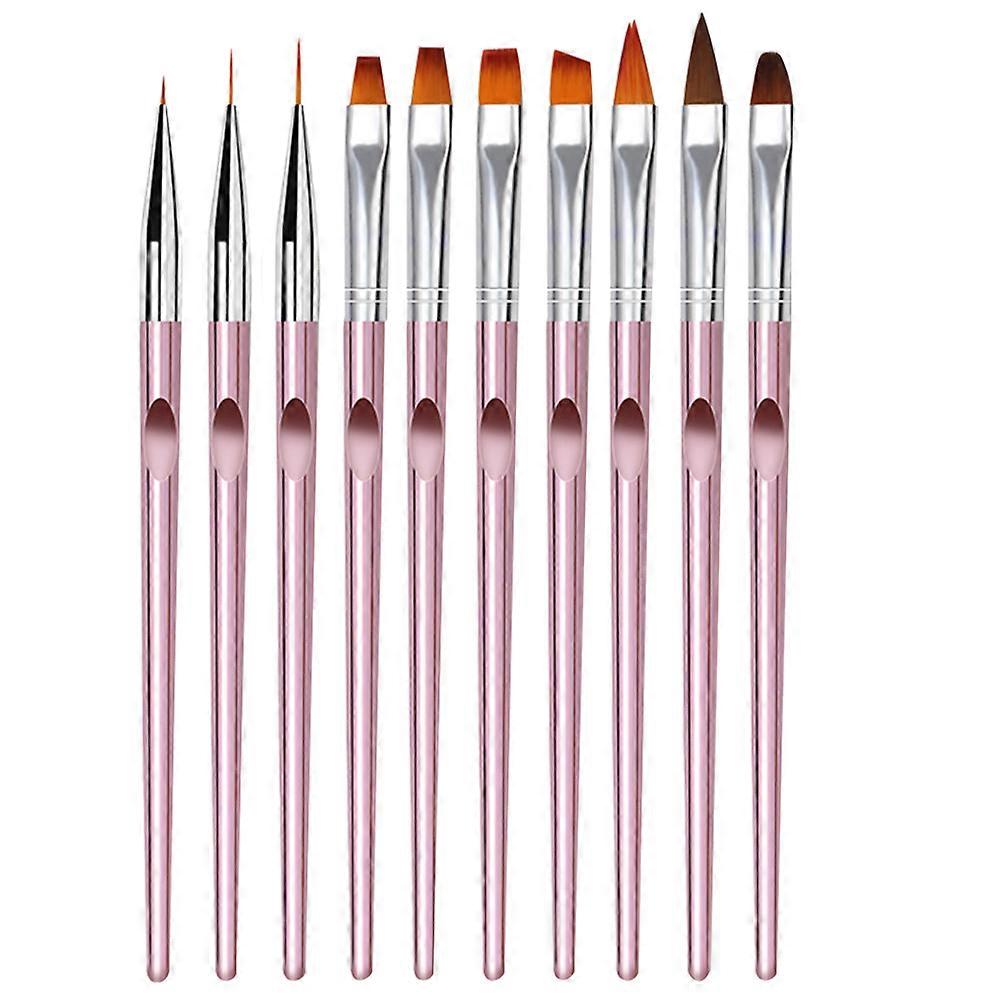 10pcs Nail Liner Brushes Crystal Nail Pen Nail Painting Brushes Manicure Brush Nail Paint Art Tool Dotting Pen for Salon Women Home (Rose Gold)