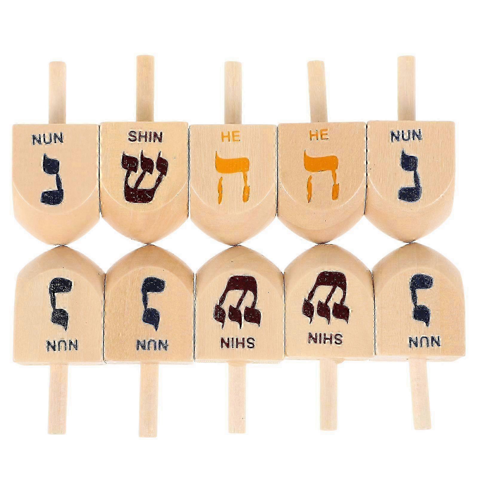 10pcs Hanukkah Wooden Dreidel Set Classic Spinning Tops for Kids Hanukkah Wood Dreidel Hanukkah Party Supplies and Decorations