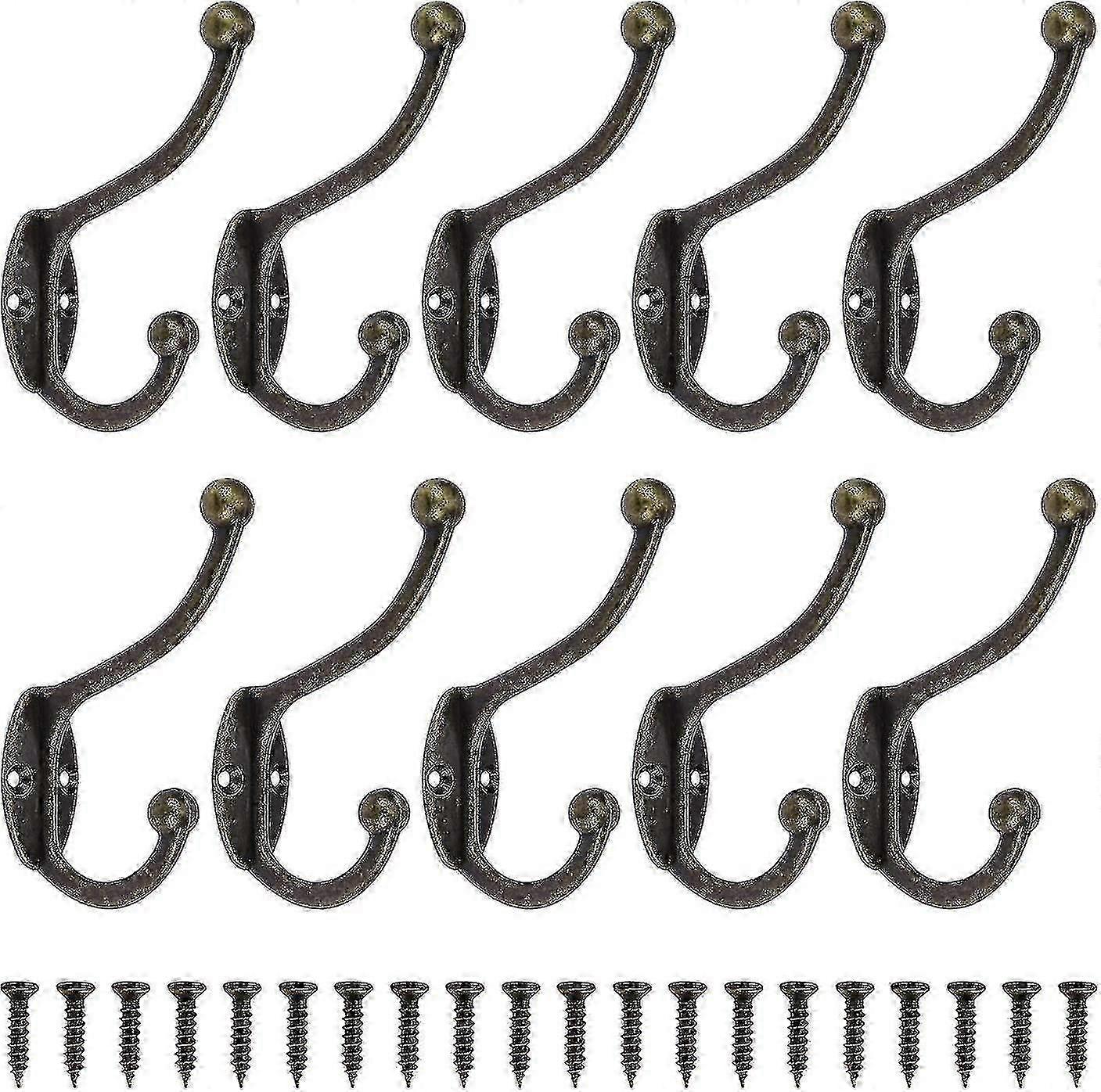 10pcs Vintage Coat Hooks, Heavy Duty Wall Mount Hangers, Antique Bronze Clothes Hooks for Door Bathroom Bedroom Kitchen