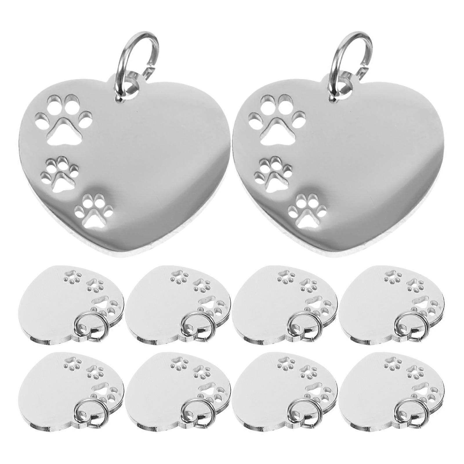 10pcs Blank Pet Tags Cute Heart Shape With Hollow Paw Pattern Dog Tags Dog ID Tags Stainless Steel