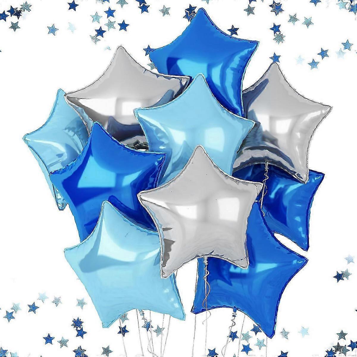 10pcs Blue Silver Star Balloon, Star Shaped Balloon, Foil Balloons, Star Helium Balloon for Birthday, Wedding, Valentine's Day, Christmas Party Decor