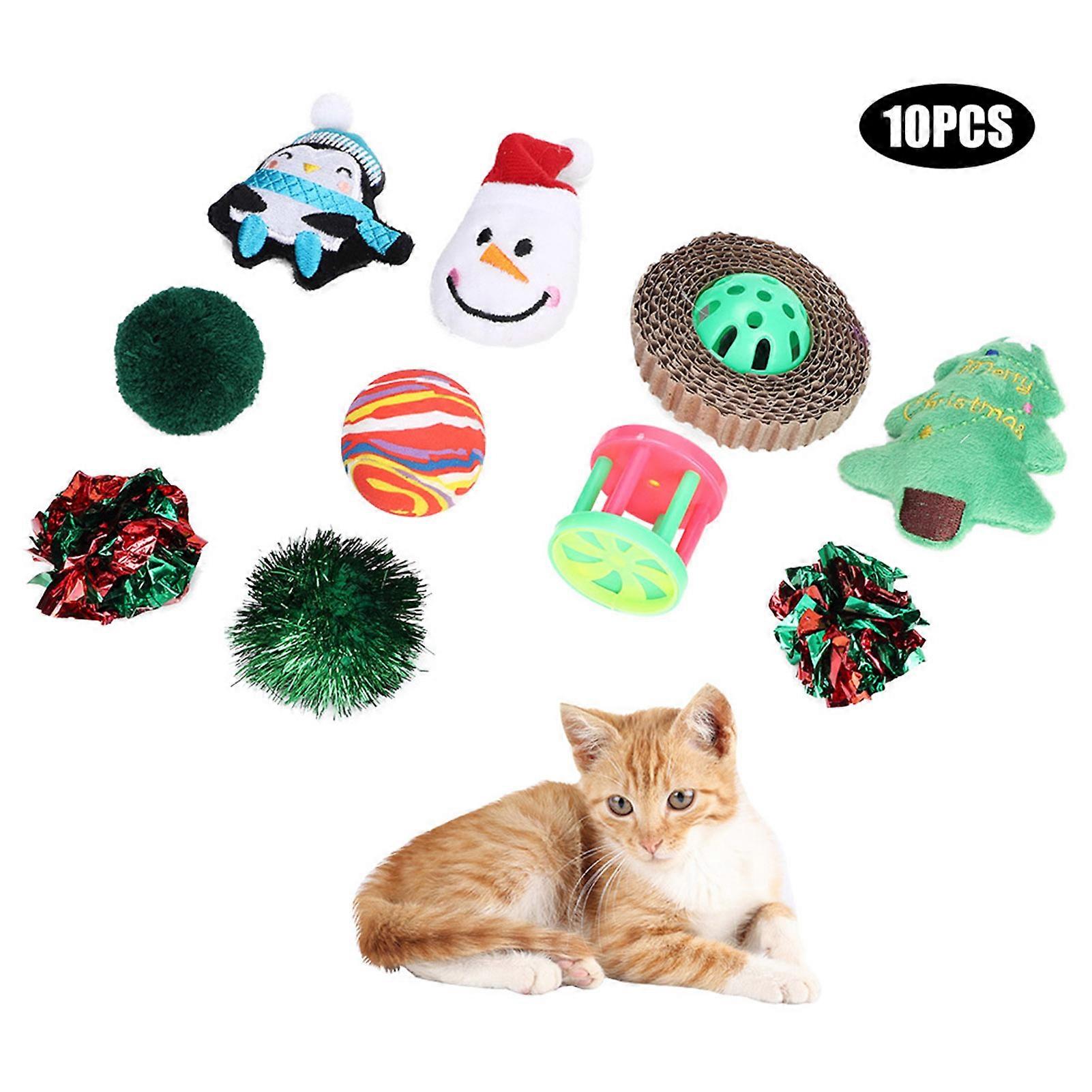 10pcs Plastic Pet Cat Christmas Ring Paper Ball Bell Funny Interactive Training Supplies Toy Set