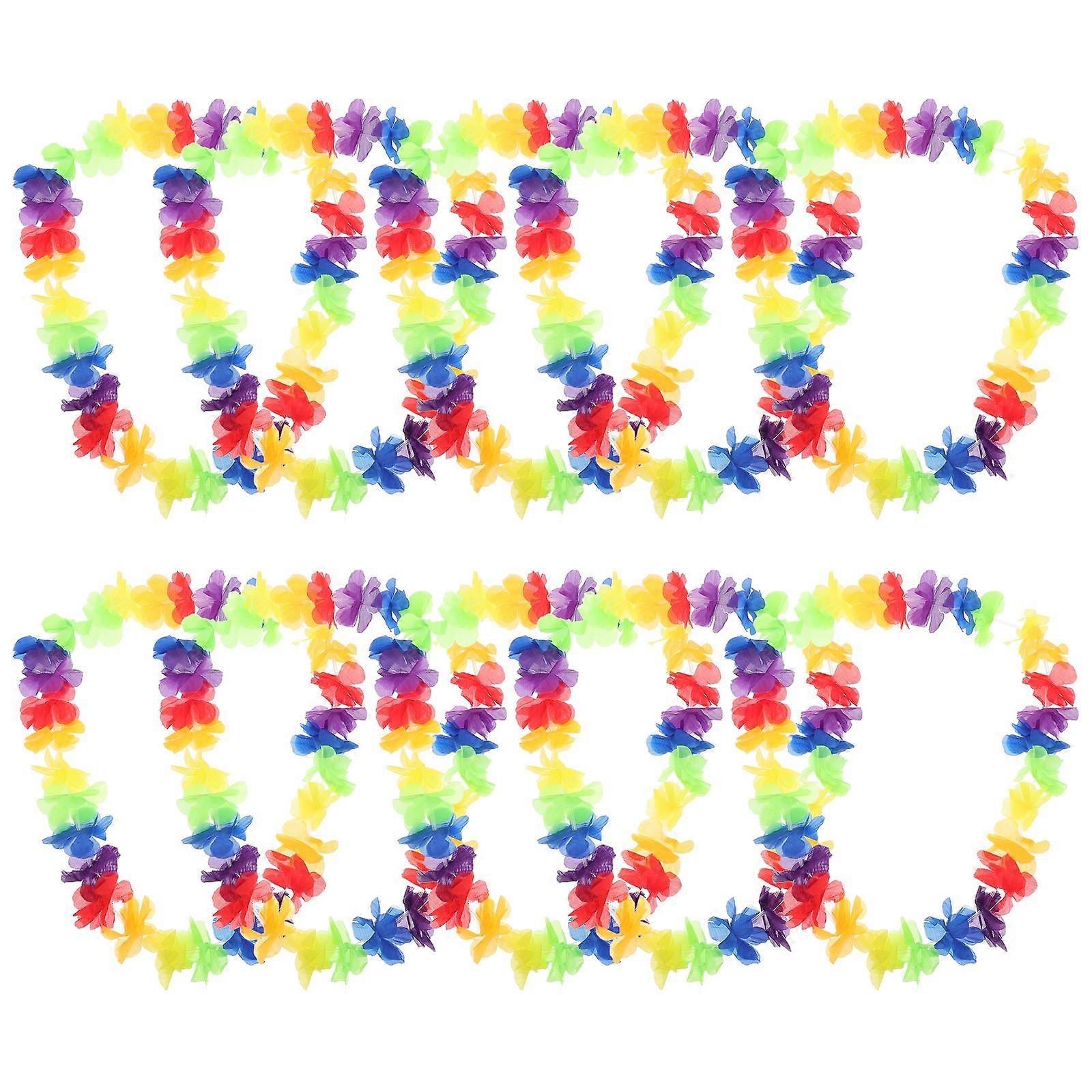 10pcs Full Colorful Hawaiian Leis Artificial Flower Necklace Classic Garland Tropical Luau Party Neck Loop Favors Beach Hula Dance Dress up Costume Ac
