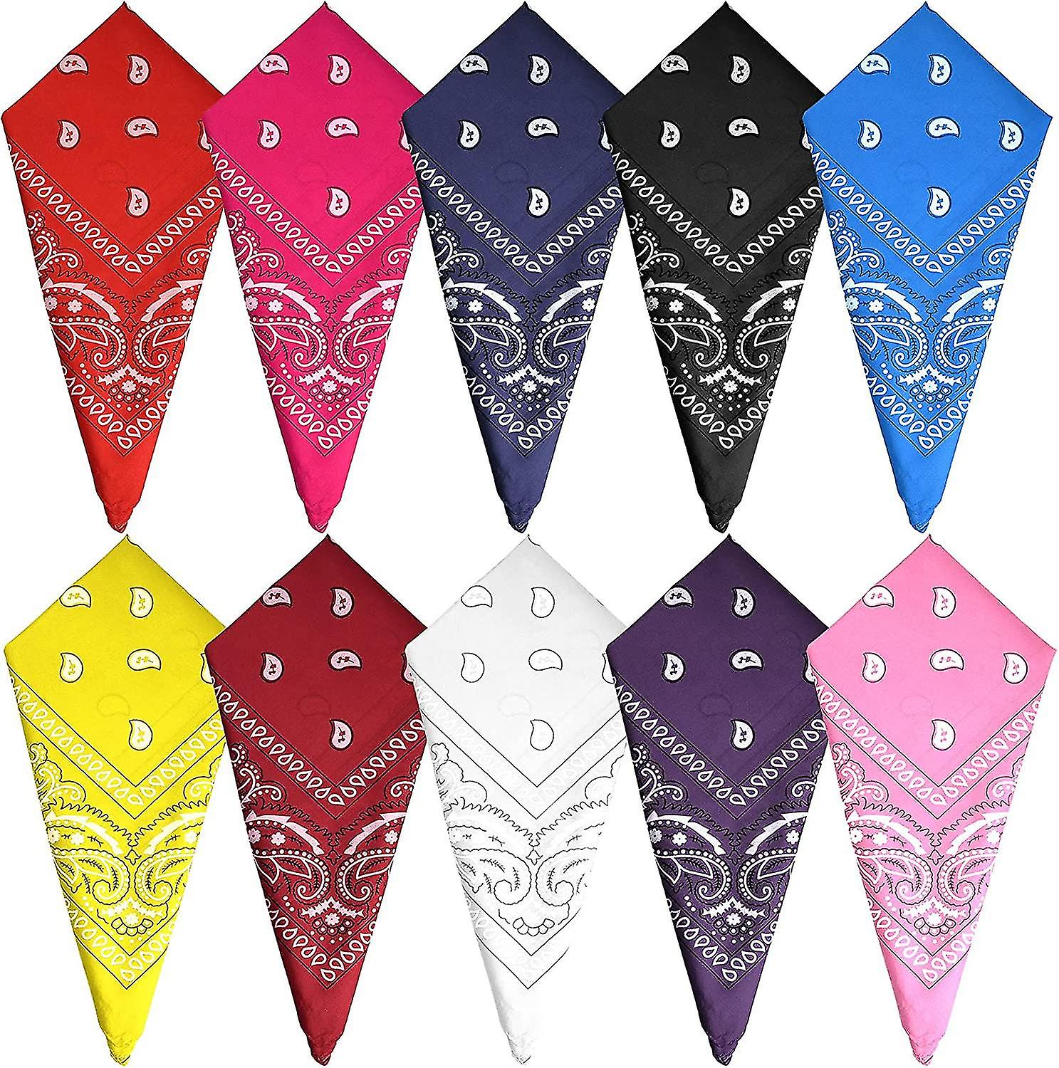 HIGH QUALITY MATERIAL: these paisley bandanas are made of polyester, the advantages of polyester are soft texture and dry quickly, more durable, fewer wrinkles than cotton and the color doesn't fade .ABUNDANT IN COLOR QUANTITY: cowboy bandana bulk contains 10 pieces of bandanas paisley headbands of 10 varied colors NOTE: WE ARE VERY SORRY, SOME PRODUCTS HAVE THE SAME QUANTITY BUT THE COLOR WILL BE 1 TO 3 LESS .Polyester .MULTI-FUNCTIONAL BANDANA: can be used as sunscreen headband, riding mask, sunscreen mask, headband, scarf and more can also be used as a daily dress collocation, fashionable and easy-match .VINTAGE PAISLEY PATTERN: these colorful bandanas featuring an west design with paisley pattern, and make them look event stylish and retro They are suitable for most ages and occasion, camping, indoor or outdoor activity, party and so on .WIDE APPLICATION: suitable for skiing, running, dancing, hiking, tennis, hiking, cycling, mountain climbing and other activities, can also be used for parties, parades and more can also be used as a handkerchief, wipe tablecloth .