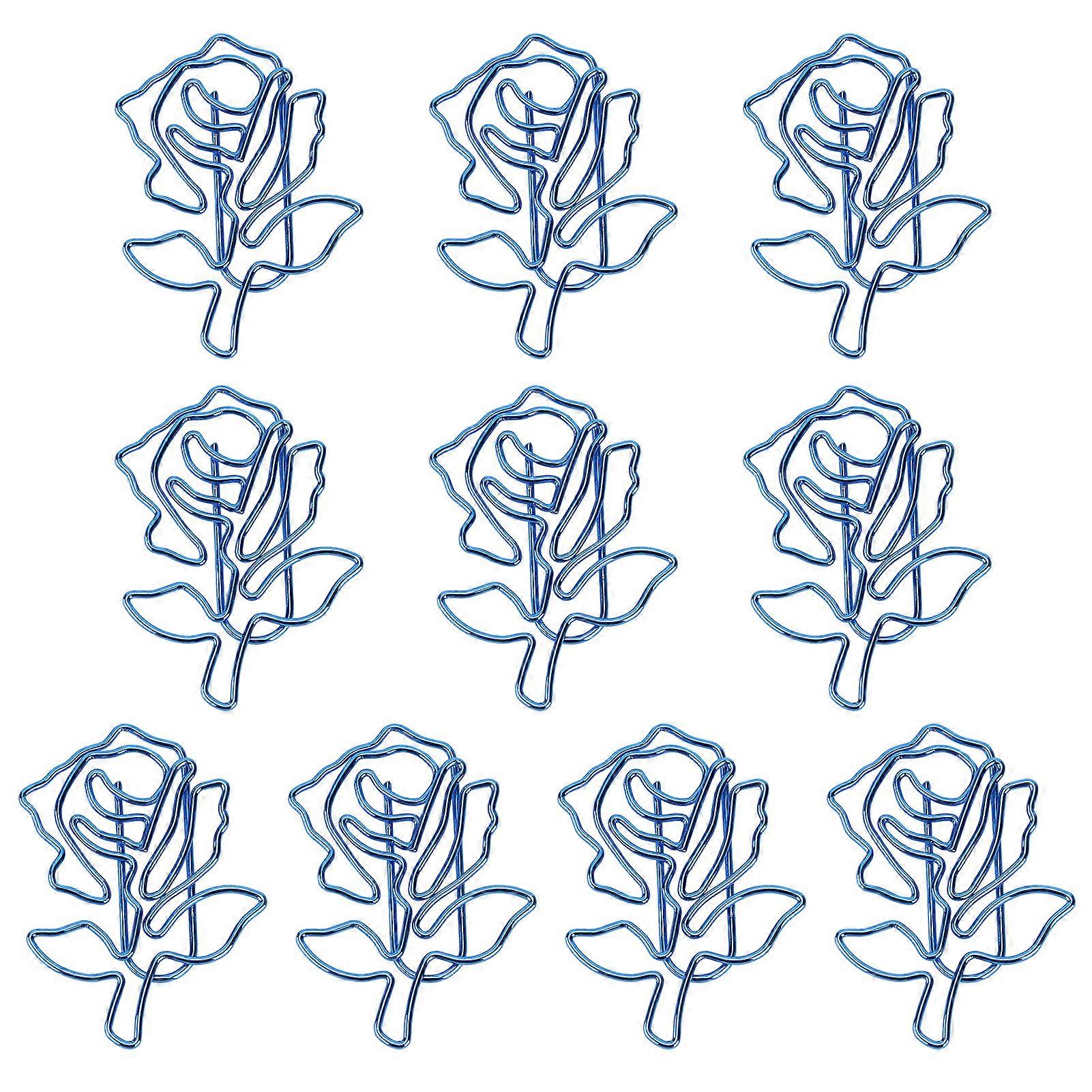 10PCS Paper Clip Blue Rose Shaped Pages Label Iron for Bookmark Notebook Agenda Book