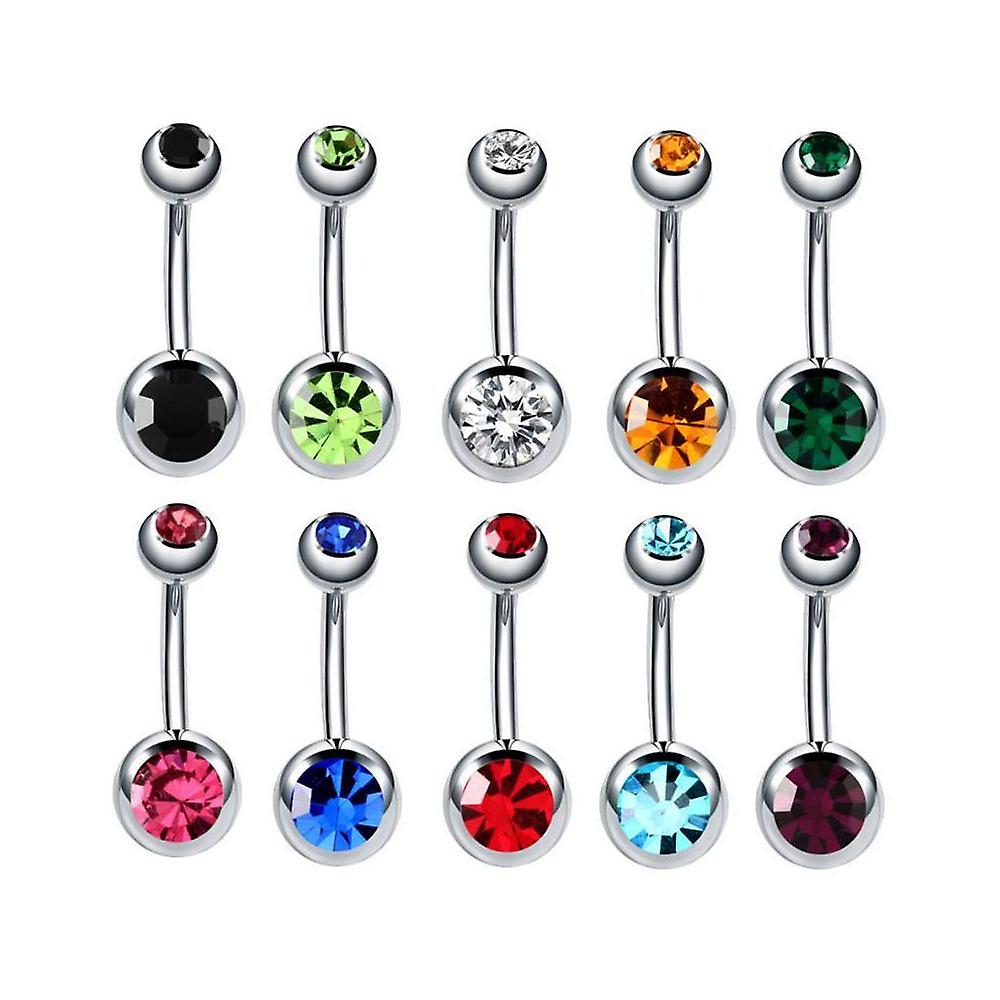 10pcs Body Jewelry Crystal Ball Button Belly Button Ring Silver