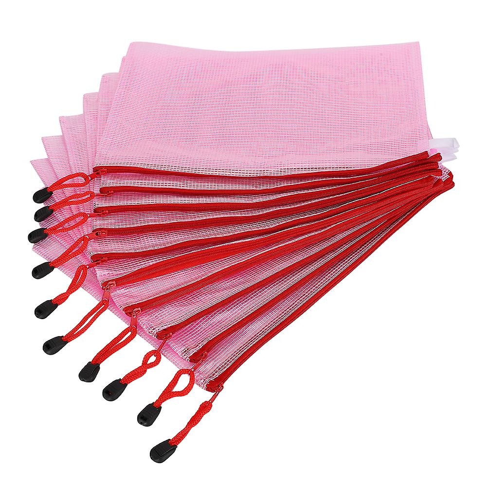 10pcs Mesh Zipper Bag A4 File Folder PVC Transparent Information Pack Document OrganizerLight Pink