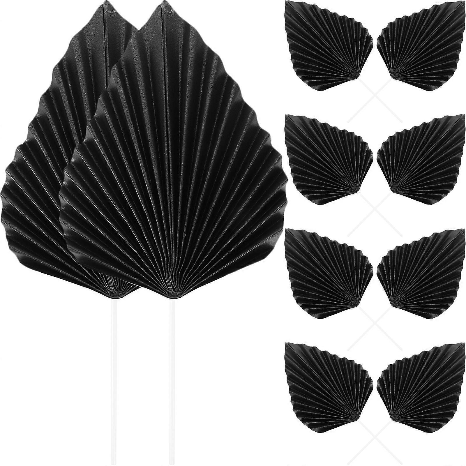 10PCS Palm Leaves Cake Picks Paper Fan Cupcake Toppers Insert Decoration Birthday Cake Ornament Black