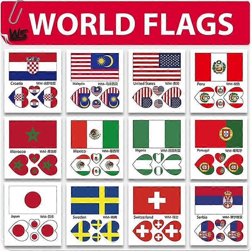 10Pcs World Flag Face Sticker Temporary Football Cheerleader Prop World Cup Heart-Shaped Waterproof Face Hand Stickers