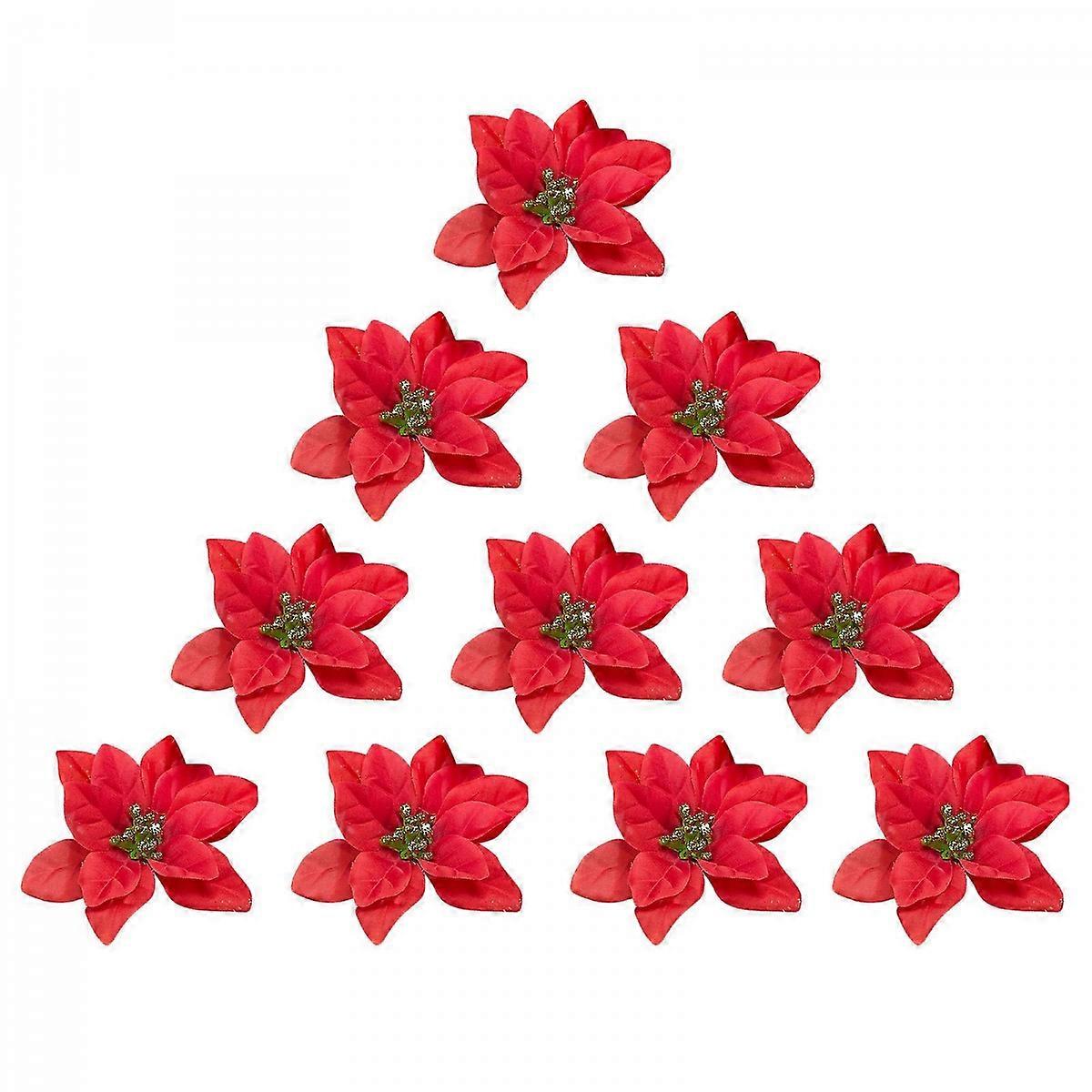 10PCS Artificial Fake Flowers Christmas Tree Poinsettia Glitter Decoration